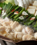 | 原材料 | 牛ショウチョウ(国産)、もつ鍋スープ(醤油、鶏がらスープ、みりん、昆布エキス、食塩、砂糖、清酒、カツオエキス、酵母エキス)、(一部に小麦・大豆・鶏肉・牛肉を含む) |